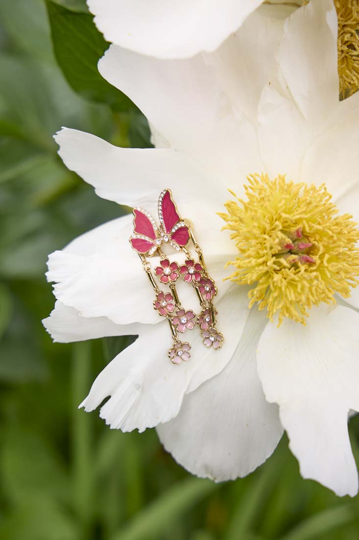 Blending sculptural floral silhouettes, richly colored enamel, and romantic crystal accents to create a freshly cut take on earrings, this collection honors the process of transformation and our ever evolving journey of self-discovery.