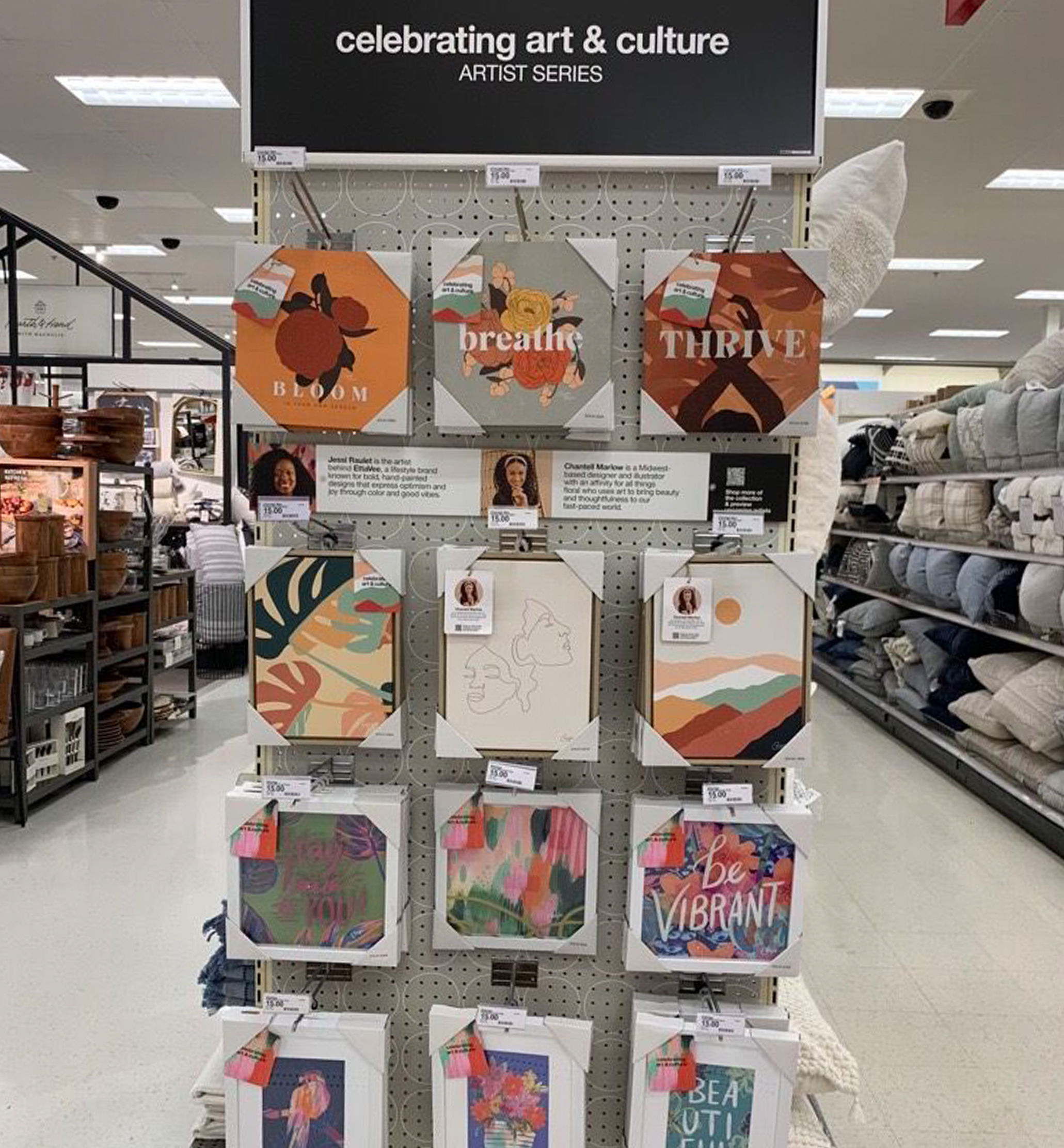 Mainstream Home introduced a full Artist Series collection of kitchen textiles and table linens highlighting Oris Eddu’s brand, Breathe Live Explore, as well as Rongrong DeVoe and Creative Ingrid. The artists are prominently featured in the displays and packaging. Launched at Home Textiles Market in March 2023, the collection will be in stores next year.
