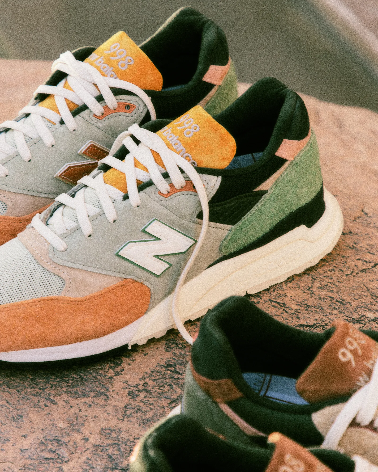 Designed by Ronnie Fieg, owner and founder of Kith, the limited edition sneakers were a collaboration between the foundation and the fashion powerhouse. Aptly named New Balance Made in USA 998 – Broadacre City, Fieg was inspired by Wright’s drawings of his suburban utopian community, Broadacre City. Offered in two colorways, the sneakers express the palette and textures of Wright’s sketches. “I’ve found a lot of inspiration through studying Wright’s work over his lifetime,” Fieg tells AD over email. After visiting Taliesin West multiple times, he became friendly with the foundation, who told him more about Broadacre. “‘It’s the purest example of Wright being so far ahead of his time,” Fieg adds. “[The foundation] shared sketches and renderings with me, and I fell in love with the color palette Wright used. This became the basis of the New Balance 998s we created.”