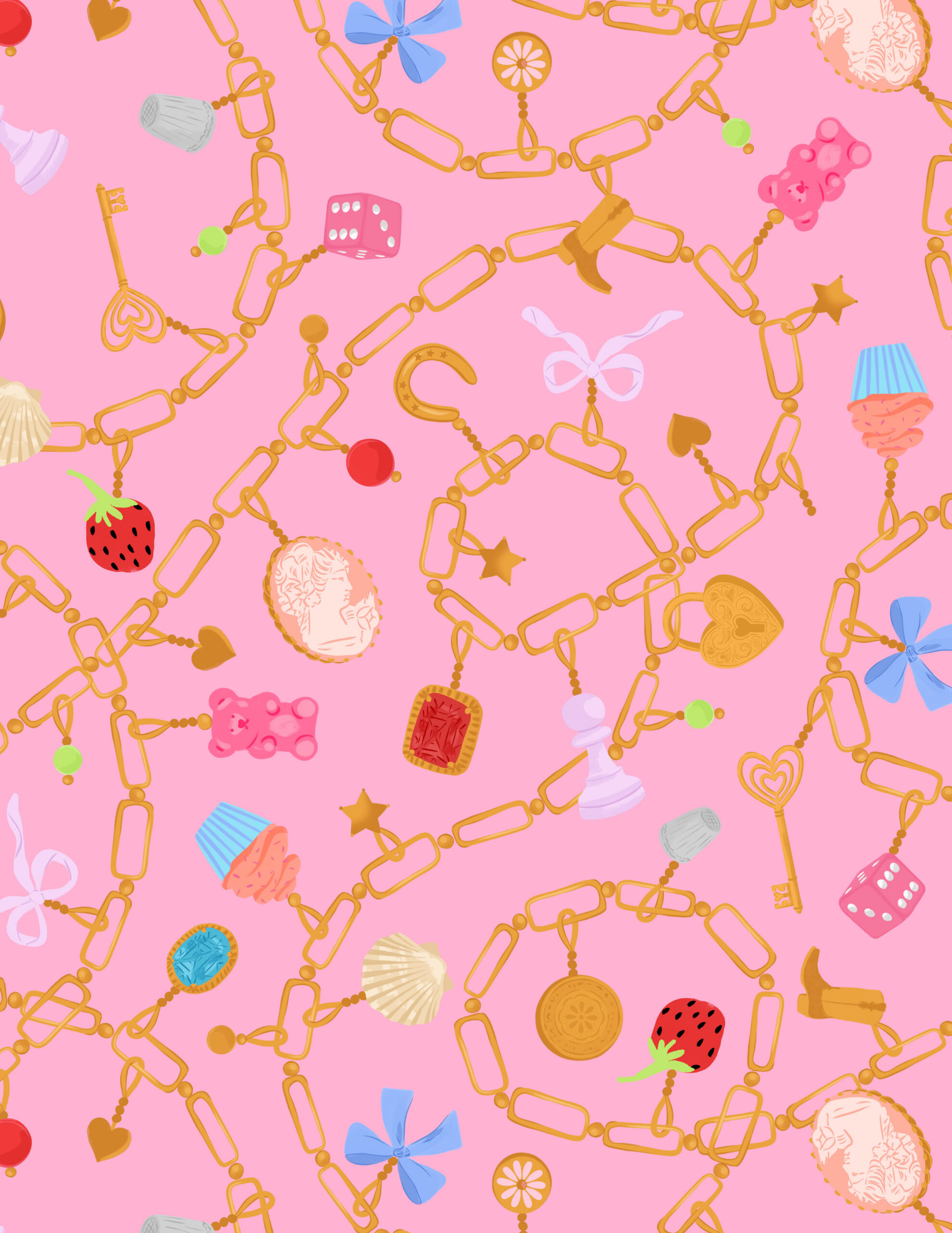 Charms, treasures, and trinkets make this “mini collectibles” print story—tiny objects arranged like a charm bracelet, sticker sheet, or curated shelf. It’s playful, lucky, and built for allover prints, scattered minis, and chain layouts. Rooted in everyday glimmers and nostalgia, it leans into smile-inducing references that feel instantly collectible.